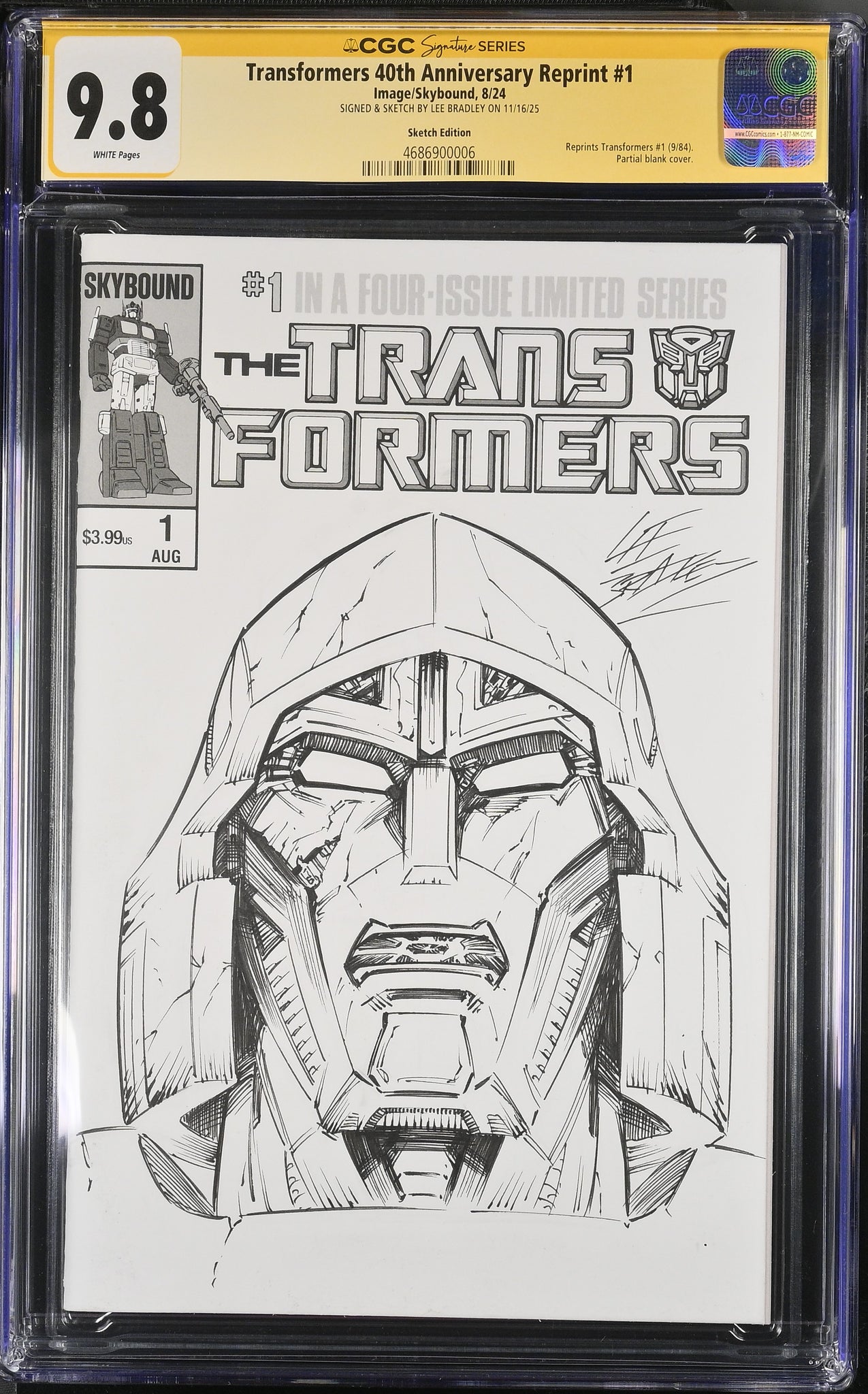 TRANSFORMERS #1 40TH ANNIVERSARY REPRINT SIGNED AND SKETCHED BY LEE BRADLEY CGC 9.8 46869000069.8